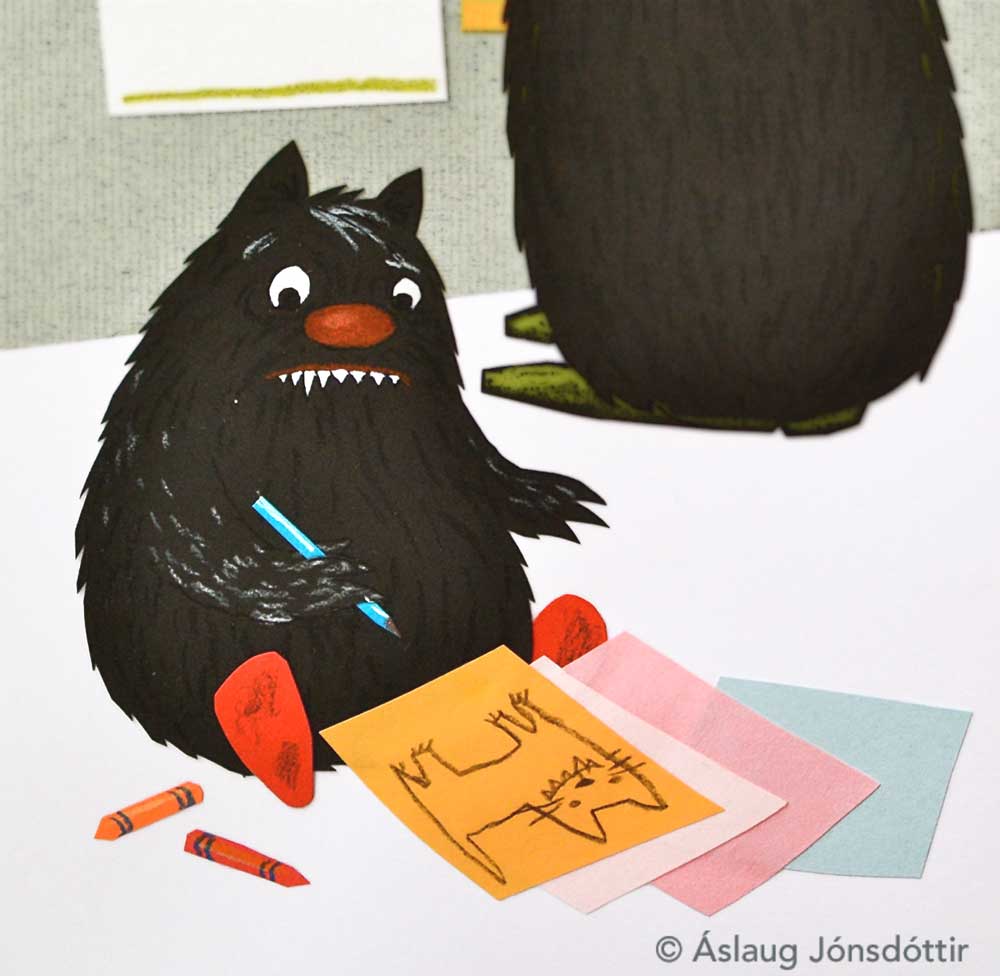 ♦ Myndlýsingar: Litla skrímslið er listrænt með afbrigðum. Eða hvað? Það kemur í ljós í bókinni Skrímslakisi sem kemur út haust.