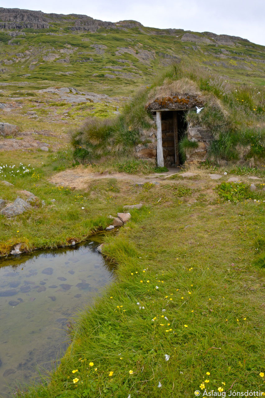 Bjarnafjordur-KotKuklara-27juli2015 Published August 14, 2015 at 853 × 1280 in Þar gala gaukar, þar spretta laukar | Visiting Bjarnarfjörður ← Previous Next → Kotbýli kuklarans á Klúku – Kluka, the Sorcerer’s Cottage