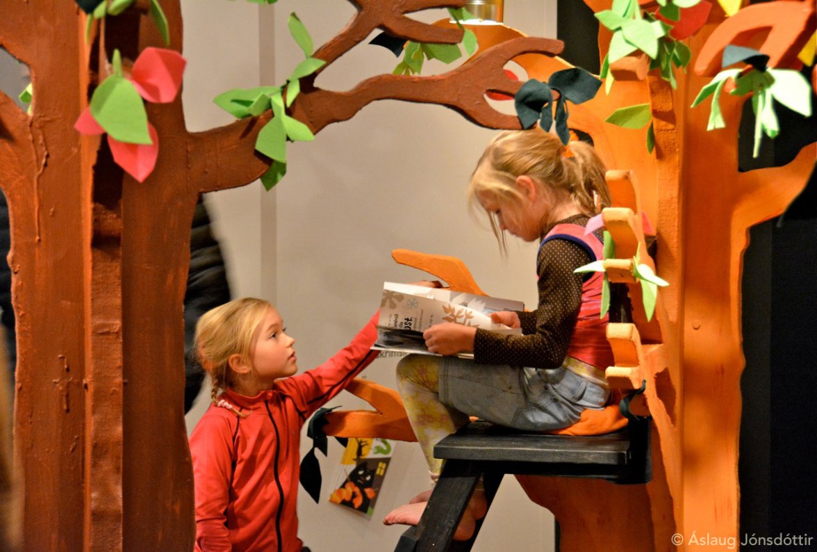 Skrimslin-2015-31-©AslaugJ Published October 28, 2015 at 1280 × 865 in Heima hjá skrímslum | The busy homes of monsters ← Previous Next → What better than to sit in a tree and read!