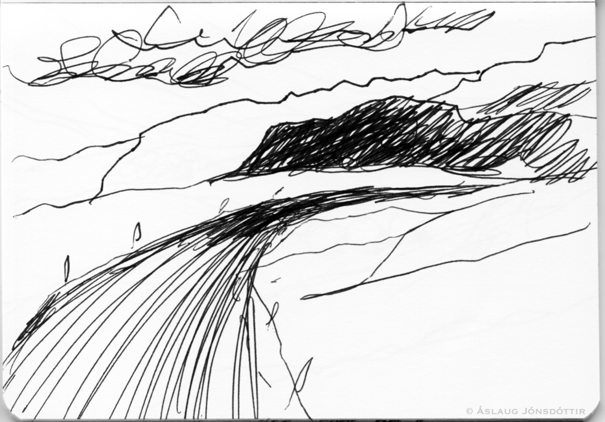 ferd-1 Published August 29, 2016 at 1200 × 836 in Mánudagsriss – á ferð | Sketching at 60 mph? ← Previous