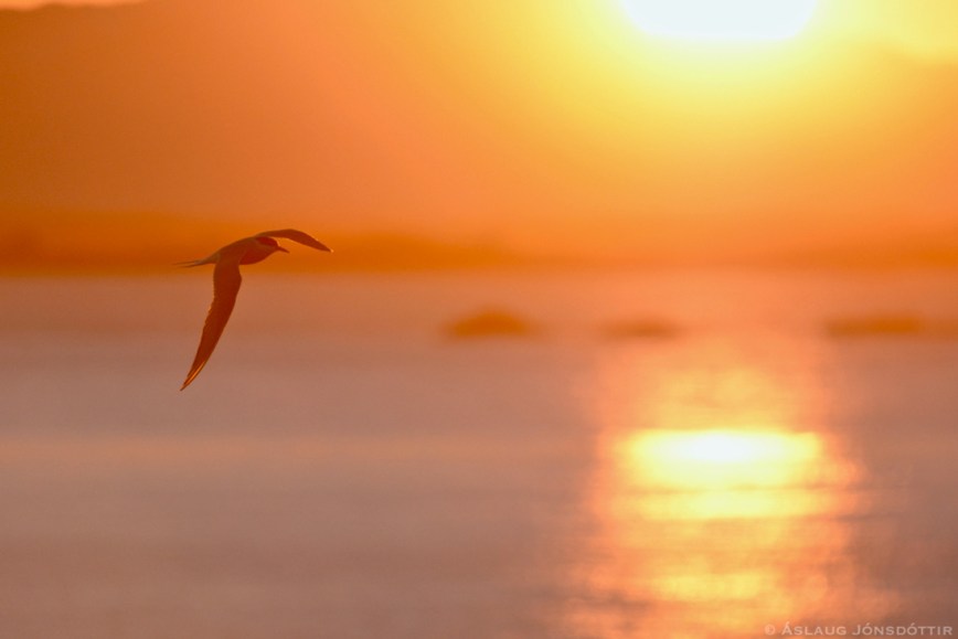 Photo Friday: The arctic tern, Sterna paradisaea, was busy as always at summer solstice. I caught the terns flying pass our farm at midnight, while the sun was setting behind Snæfellsnes mountain range. There are some small colonies of arctic terns in our area and the nearby Grunnafjörður mudflat/estuary is an important feeding ground for many birds. The amazing kría, a magnificent flyer and a follower of light, is worth celebrating, no less than summer solstice. Her return to the cold north, migrating from the Antarctica, as earth’s vulnerable ecosystems tremble, is a true miracle.