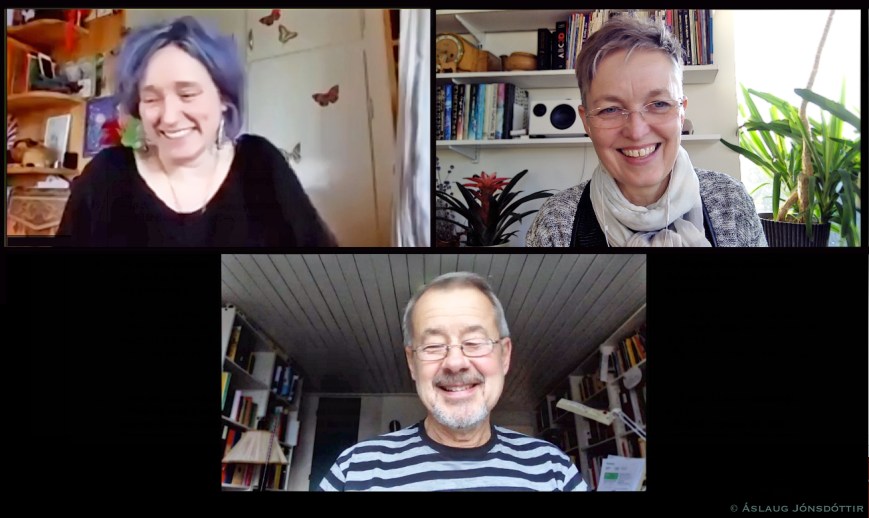 Við söknum þess auðvitað að geta ekki ferðast á milli landa til að hittast og vinna að nýjum bókarhugmyndum. Í gegnum tíðina höfum við átt skemmtilega og skapandi vinnustofufundi í Tórshavn og Mobacken og Melaleiti og reyndar víðar. Vonandi náum við endurfundum þegar pestarfárinu líkur. Þangað til verða samskipti á netinu að duga.