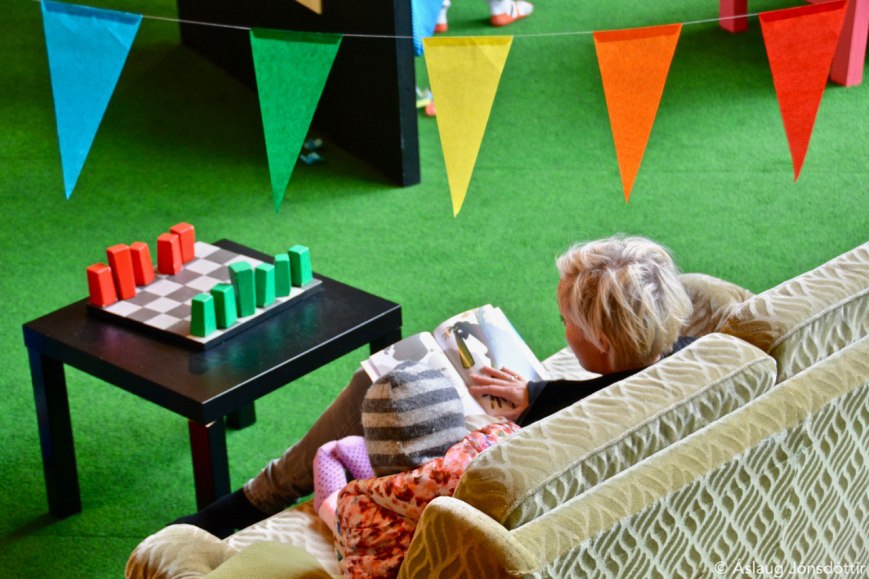 The following photos are mostly from the opening earlier this month. I was delighted to see that both children and grown-ups found pleasure in what the exhibition is all about: reading and playing together.