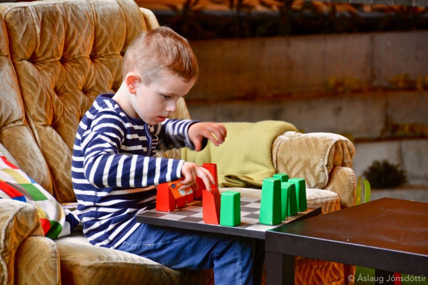 The exhibition is based on the books about Little Monster and Big Monster by Áslaug Jónsdóttir, Kalle Güettler and Rakel Helmsdal. It was originally designed and on display in Gerðuberg Culture House in 2015-2016. Art direction and exhibition design was executed by Áslaug Jónsdóttir and Högni Sigurþórsson – and we two, Högni and I, travelled to Tórshavn to work on this version for the Faroese friends of the monster series. Our good hosts and co-workers truly made us and the two monsters feel at home in The Nordic House in Tórshavn and we certainly enjoyed working in the beautiful elements of the Nordic House.