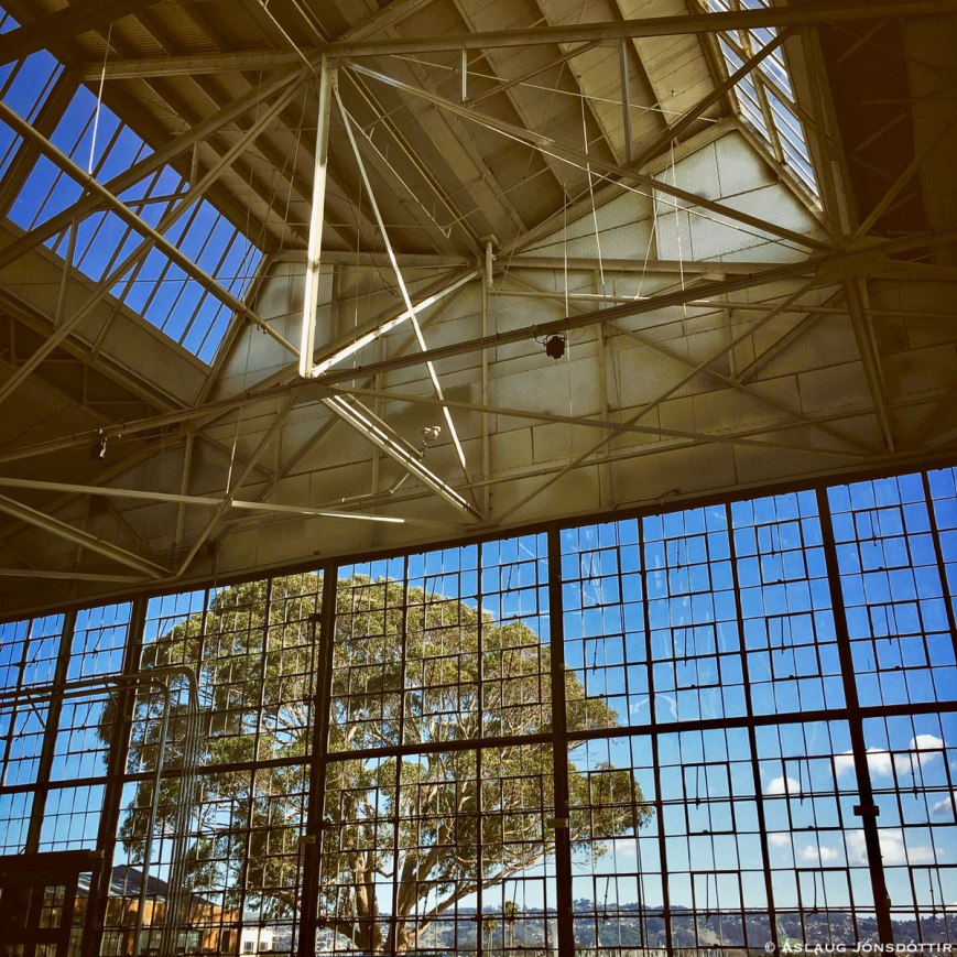 The Craneway Pavilion in Richmond at San Fransisco Bay is a former Ford Assembly Plant, a building dating back to around 1930. It is a beautiful architecture by Albert Kahn and you would of course never find any „factory“ or industrial plant today that would look anything like it or offer such a view and a room full of light. Out of the window you could see an old eucalyptus tree in front of the museum of Rosie the Riveter/World War II Home Front National Historical Park, but the the Ford plant switched to assembling jeeps and tanks and other military vehicles in the war. The museum tells the story of the efforts of women and civilians during the war. The story of how the Bay area grew at incredible rate, – and more important: the story of the African American experience from World War II, was told by a most wonderful park ranger: Betty Reid Soskin, 97 years old and an unforgettable storyteller.