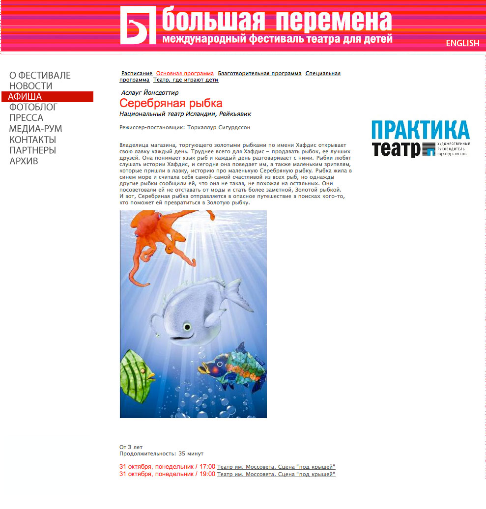 ★ Valið á alþjóðlegu barnaleikhúshátíðina BIG BREAK 2011 og sýnd í Moskvu, Rússlandi. | Selected for BIG BREAK 2011 International Festival in Moscow. Sjá hér | See link.