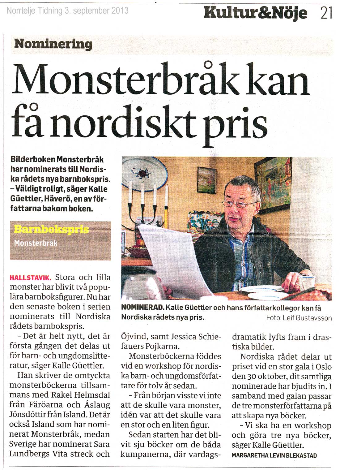Read more on the web, in Norwegian, about Monster Squabbles / Monsterbråk: at Skald Publishing; at Bokstaver.no ; at Barnebokkritikk.no (2013); at NRK (2013) ; or read few pages from the book.
