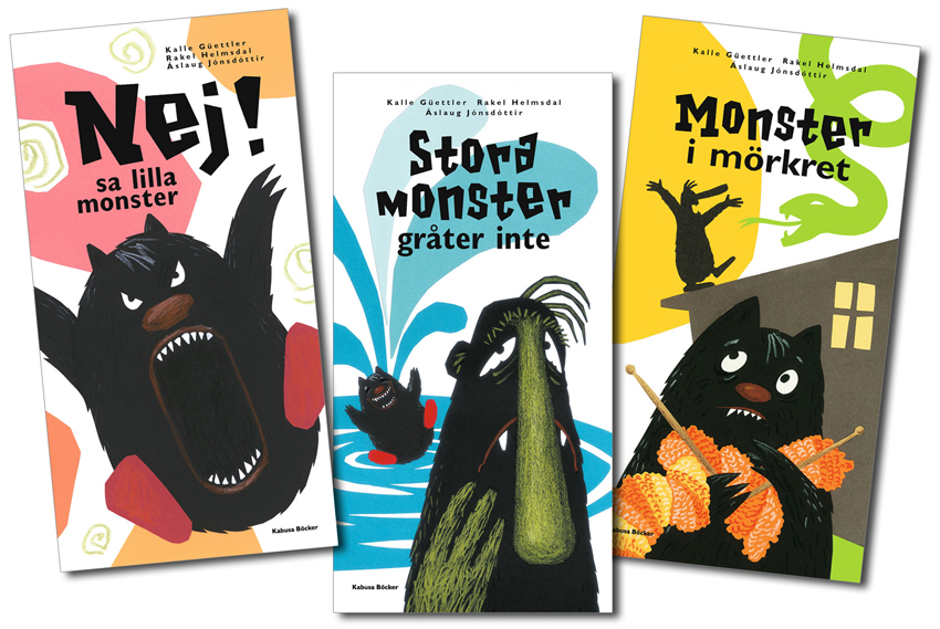 Endurútgáfur í Svíþjóð. Það er alltaf gaman að senda bækur af stað í prentun – og það á hreint ekki síður við um endurútgáfur, enda sérdeilis gleðilegt þegar útgefendur treysta bókunum til að lifa lengur en sína fyrstu útgáfu. Útgefendur okkar skrímslanna í Svíþjóð, Kabusa Böcker, ákváðu að endurútgefa fyrstu bækurnar: Nej! sa lilla monster, Stora monster gråter inte og Monster i mörkret. Þessar bækur komu út hjá Bonnier Carlsen árin 2004, 2006 og 2007 og hafa verið ófáanlegar um langa hríð, en koma nú aftur í bóksölur í lok sumars.