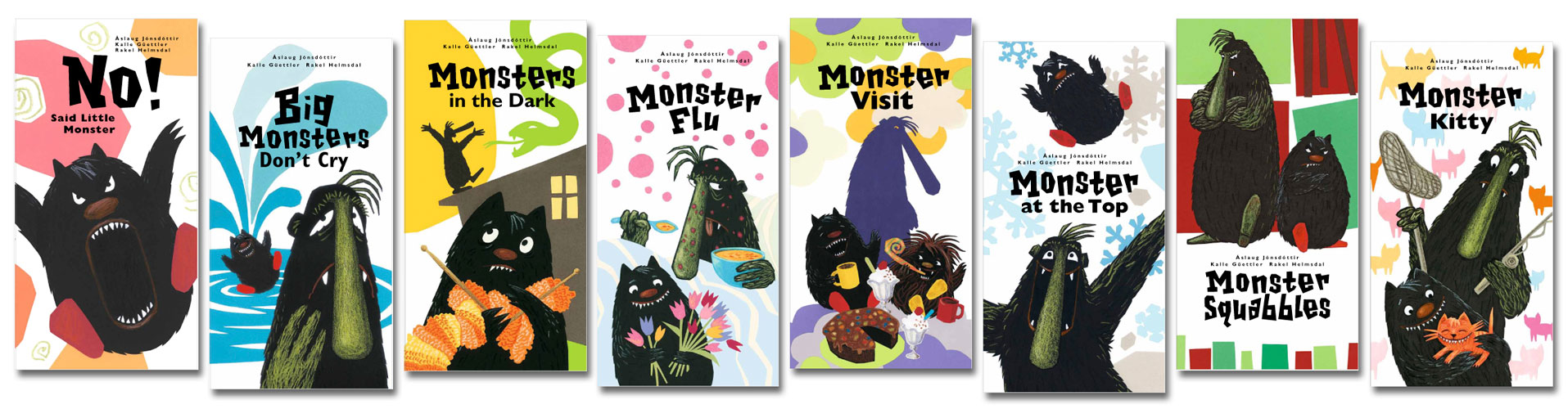 ♦ English translations: This is an important announcement to publishers! The books about Little Monster and Big Monster are now available in a provisional English translation, all set up for enjoyable reading with the illustrations and text as in the original design. Translator is the excellent author and translator Salka Guðmundsdóttir. For more information contact: Forlagid Rights Agency.