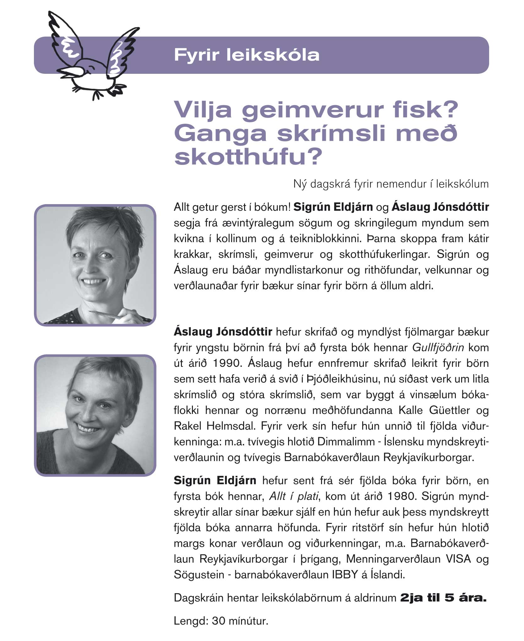 Online book readings: For the second year in a row, the City of Literature Book Fair, held in November each year, had to be canceled due to the Covid-19 pandemic. The fair is run by the Association of Icelandic Publishers and the Reykjavík UNESCO City of Literature. Instead a series of online readings and events was made: See (in Icelandic) the programme and the events Facebook. Skrímslaleikur (Monster Act) was on the programme on Dec 5, see: Bókaspjall beint til þín – Bókaspjall – Jólasögustund fyrir börn og fjölskyldur. (From 22.10 mín).