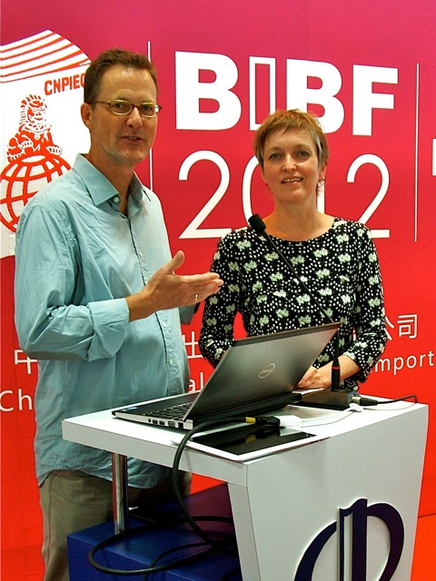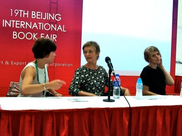 ♦ Bókamessan í Peking. Litla skrímslið og stóra skrímslið leiddu mig til Kína í lok ágúst, en nú eru sex titlar úr bókröðinni komnir út á kínversku hjá Maitian Culture Ltd., eins og kynnt var á BIBF, bókamessunni í Peking. Þar tók ég einnig þátt í norrænni málstofu sem kallaðist: „From fairytales to apps, e-books and e-learning“ ásamt Åshild Kanstad Johnsen, Alexandra Borg, Karsten Pers og Paul Chen. Allar móttökur í Peking voru einstaklega vinsamlegar, bæði af hálfu heimamanna og starfsmanna sendiráðs Íslands sem skipulögðu þátttökuna á BIBF.