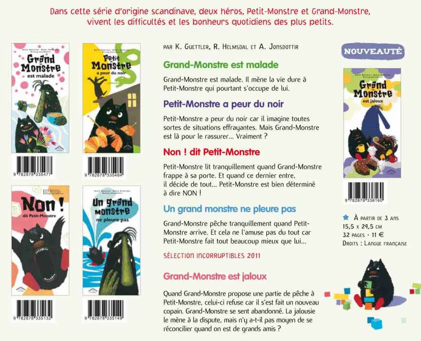 The Monster books series is co-authored with Kalle Güettler from Sweden and Rakel Helmsdal from the Faroe Islands. It includes titles such as No, said the little monster first published in 2004 and Monster at the top published in 2010. To date, six books have been published in various languages and all six are being published in China by Maitian Culture Press in Tianjin.”